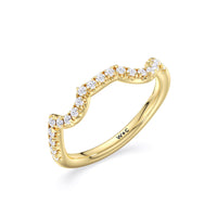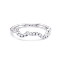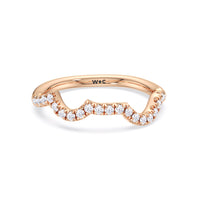 This curved diamond set wedding band is perfectly contoured to complement our vintage vine engagement ring for a simple and sophisticated look.