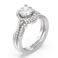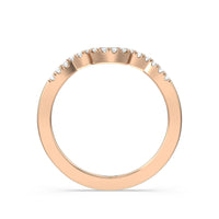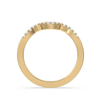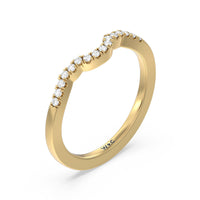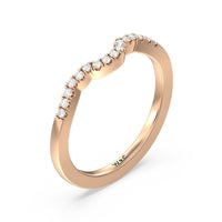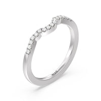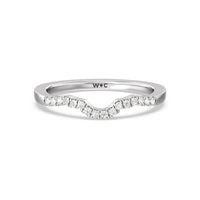 Sparkling diamonds adorn this sleek crescent shaped ring which is perfectly crafted to complement our Wave Halo Engagement Ring.