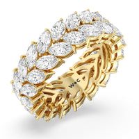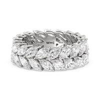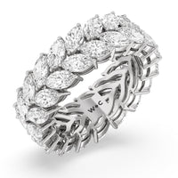 Celebrate a love that continuously grows with this remarkable ring. The band is fully covered with two rows of marquise-cut diamonds, set on prongs. The Marquise Stones are laid out in a style that suggests movement. Like the flow of your love, this ring's brilliance never dulls and never stops.