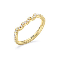 This curved diamond set wedding band is perfectly contoured to complement our Winding Vine Engagement Ring for a simple and sophisticated look.